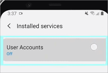 • Go to the Installed services or Accessibility services account to find ‘User Accounts’ and turn it on.