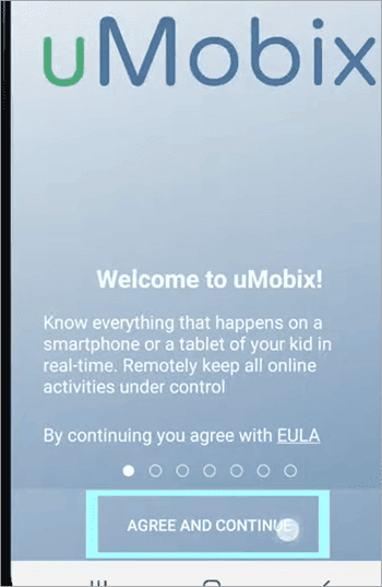 • Go to uMobix setup and click on ‘Agree and Continue’ to proceed further.