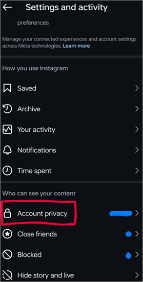 Find the “Account Privacy” option and toggle the “Private Account” switch.