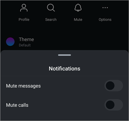 #6) Tap on the toggle against “Mute Messages” to stop messages from the profile and Tap the toggle against “Mute Calls” to stop calls. You can choose to mute both messages and calls.