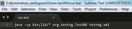 java -cp bin;lib/* org.testng.TestNG testng.xml