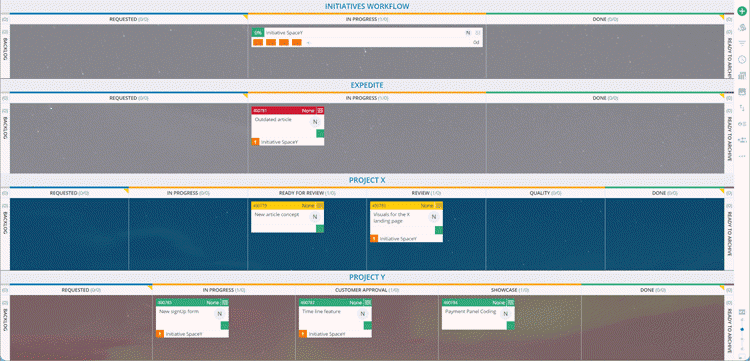 - The Project/Initiatives swimlane gives you the opportunity to breakdown big projects into smaller tasks and keeps track of every item. This way you can see a project’s status at a glance.