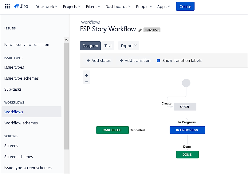 Normally, users work on issues that contain workflow and it consists of status and transitions that each issue will go through. As an example, here we will look at how to create a workflow and assign it only to the Story issue.