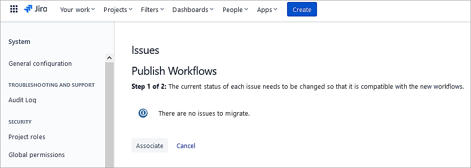 Click on Associate to ensure compatibility of existing issues with the new workflow.