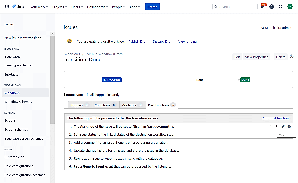 - Workflow Example 5: Update the Assignee Field on the Transition to Done