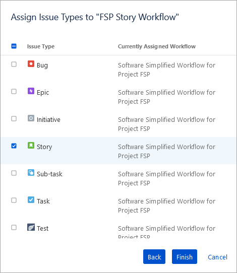 Select the Story issue and click on Finish