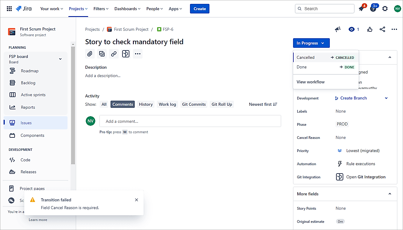 - Workflow Example 3: Make a Custom Field Mandatory During the Transition