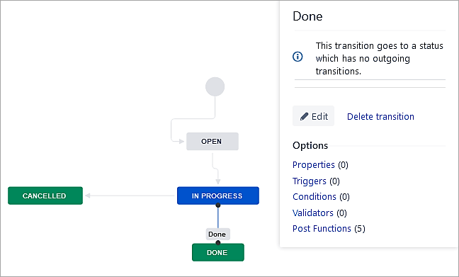 Click on the transition to Done and select Post Functions.