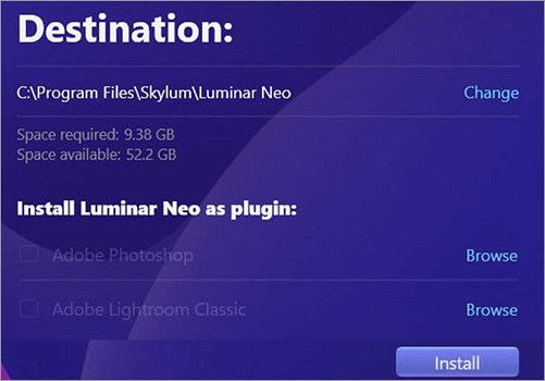 - During the installation, you’ll be asked to choose Luminar Neo as a plugin for Adobe Photoshop or Adobe Lightroom Classic.