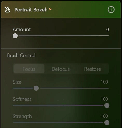 You’ll find this feature under the ‘Portrait’ section on the right-hand side of your interface. We can apply automatically the filter with just a single click. Alternatively, you can apply the filter manually with the brush option.