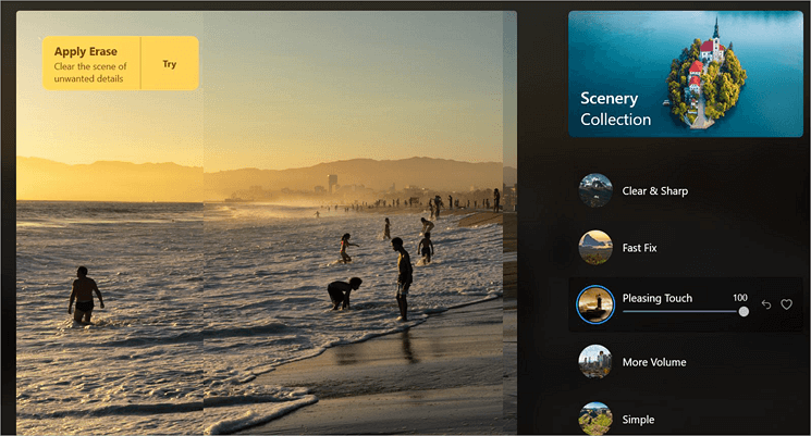 As you can see from the image above, I used the same technique to erase the boat appearing in the image partially. You’ll also be able to clear the erase mark or restore the erased object with just a single click.