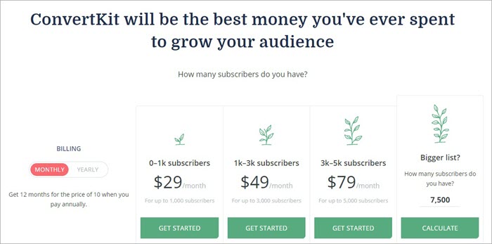 The best thing about ConvertKit is that its pricing is set according to the number of subscribers, which means you can easily select your plan accordingly. The starting plan is set from $29 per month and they also provide a 14-day free trial.