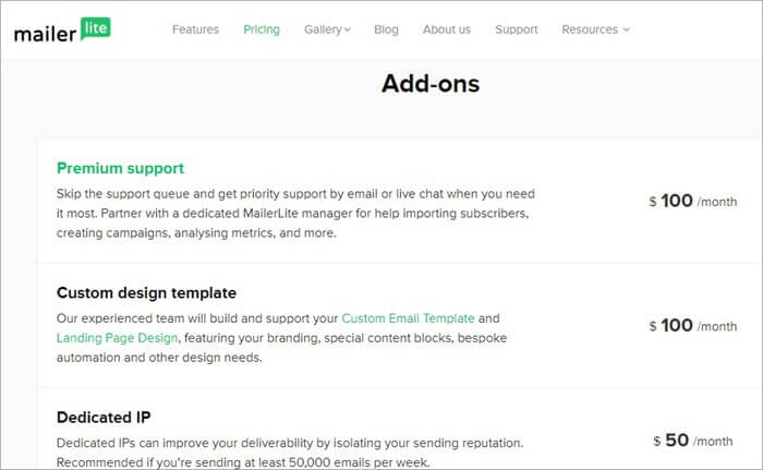 | Email sends per month | 10000 | 100000 | 500000 | Custom |