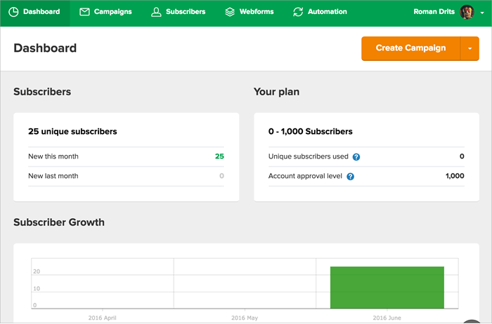 MailChimp Dashboard:
