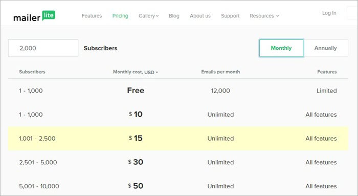 | MailerLite | Mid-level marketers | Bulk email marketing | For 1,000 subscribers | $10 | Only emails |