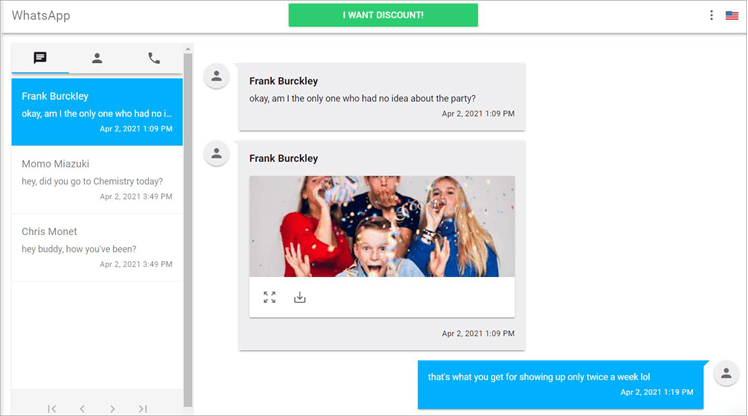 You’ll have access to all messages sent via these apps. These include call information and multi-media files shared through them, as depicted on the mSpy Whatsapp interface presented above.