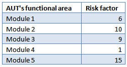 Take an average of the Risk factor values. For example, if there are 5 teams, for each module, add all the risk factor values and divide it by 5. These are the final values we are going to deal with. Say these are the averaged risk factors: