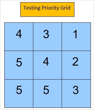 Based on the above positioning of the test cases in the grid, we prioritize and label the tests with priorities 1, 2, 3, 4, and 5, and mark them against each of them. The most important tests are positioned in a 1st grid that is assigned with priority 1 and similarly less important ones are ranked as 2, 3, 4 and 5.