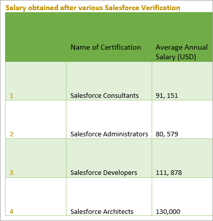 Salary obtained after various Salesforce Verification