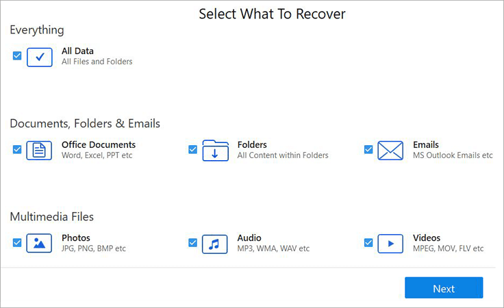 #1) As soon as you launch the software, select the type of data you wish to recover from the options presented to you.