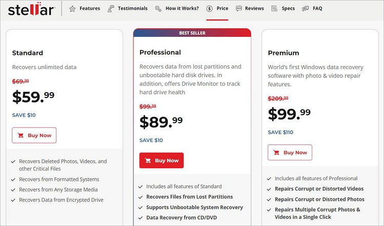 Finally, I considered Stellar Data Recovery’s price and compared it with other popular data recovery tools in the market.