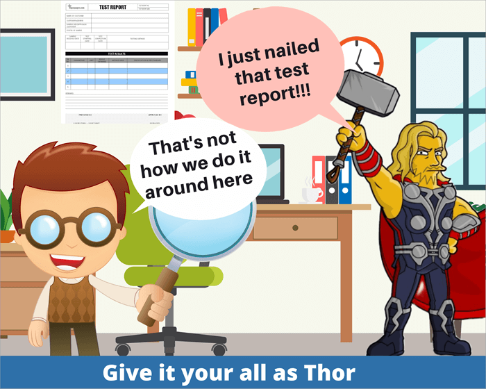 A logical mindset is a big win in QA, but with a combo of a strong personality, like Thor and his hammer. Thor has a strong personality and a strong sense of not giving up. After his home planet was destroyed and he lost his hammer, he exhausted all possible options to find a way to kill Thanos.