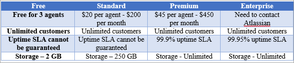 Jira Service Management Cloud comes in 4 plans. I have added the pricing for 10 agents on a per-month basis.