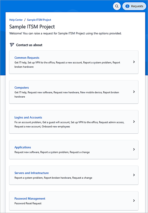 A project admin can customize to create of these portal groups and request types.