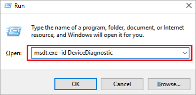 type “msdt.exe -id DeviceDiagnostic”