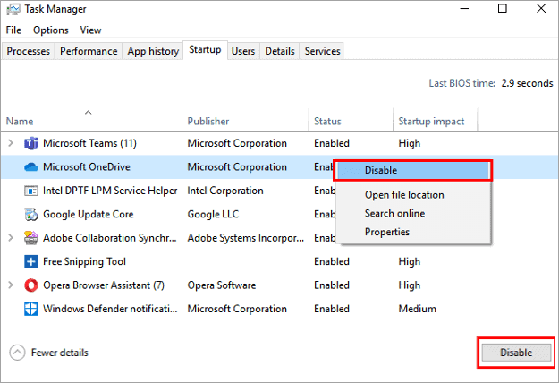 #5) Right-click on all the applications one after another and click on the “Disable” option or click on the “Disable” button at the bottom, as shown in the image below.