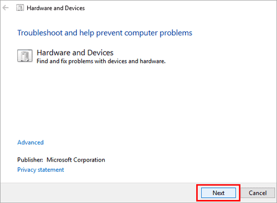 #7) Run Hardware and Device Troubleshooting Tool
