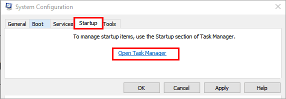 #4) Now, click on “Startup” and “Open Task Manager” as shown below.