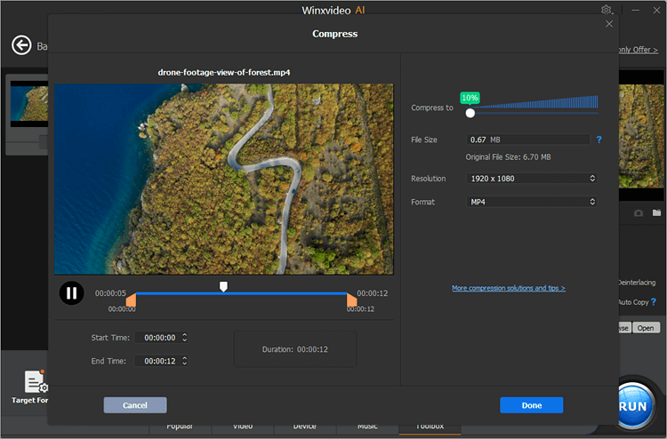 Winxvideo AI can decrease the file size by as much as 90% thanks to its advanced compression kernel and efficient coding methods. Users can condense videos to help save storage space or facilitate uploading on social media sites at will.